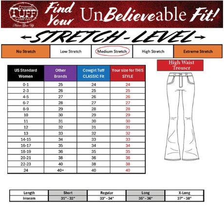 Fit Tip: Every Cowgirl Tuff style fits a little different—and that’s exactly why we include a specific size chart for each style right here on the page. Be sure to check it out before you add to your cart so you can snag the perfect fit the first time.