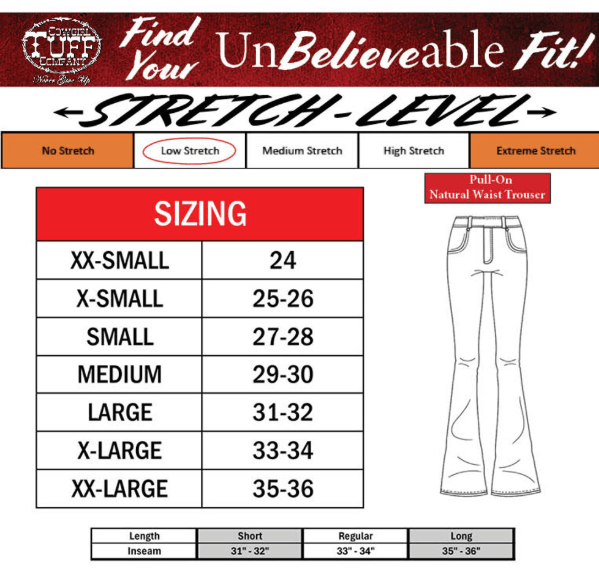 Bold, sleek, and ready to steal the show—the Cowgirl Tuff Flame Pull-On Trouser Jeans are here to turn heads and light up your summer style. Whether you're two-steppin’ at a rodeo, dancing under the lights at a concert, or just making your own rules on a Friday night out, these trousers bring all the fire without sacrificing comfort.