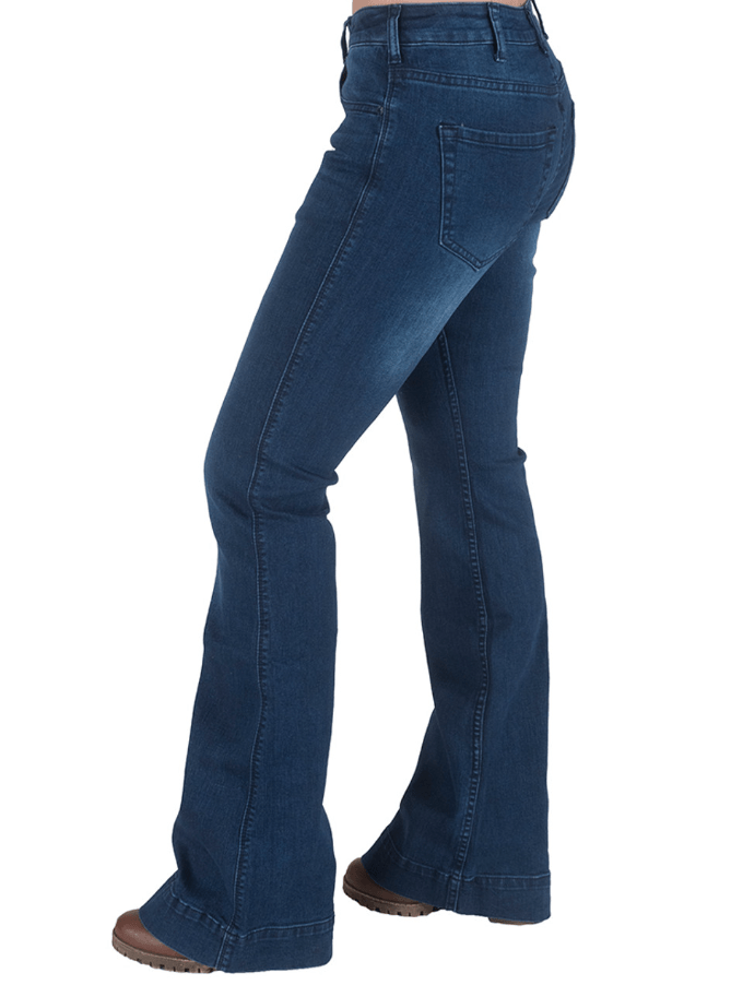 If you're ready to level up your denim game, this exclusive trouser jean is the one you’ve been waiting for. With a rich, darker medium wash, subtle styling, and a flattering flare, this pair brings a fresh, elevated vibe to your western wardrobe—without sacrificing comfort or everyday wearability.Built with our signature TUFF FLEX™ fabric, this jean offers medium stretch for that just-right balance of structure and softness. The Natural Waist rise (10"–11") sits comfortably at your waist, offering support and a flattering silhouette that keeps you feeling secure and confident all day long.