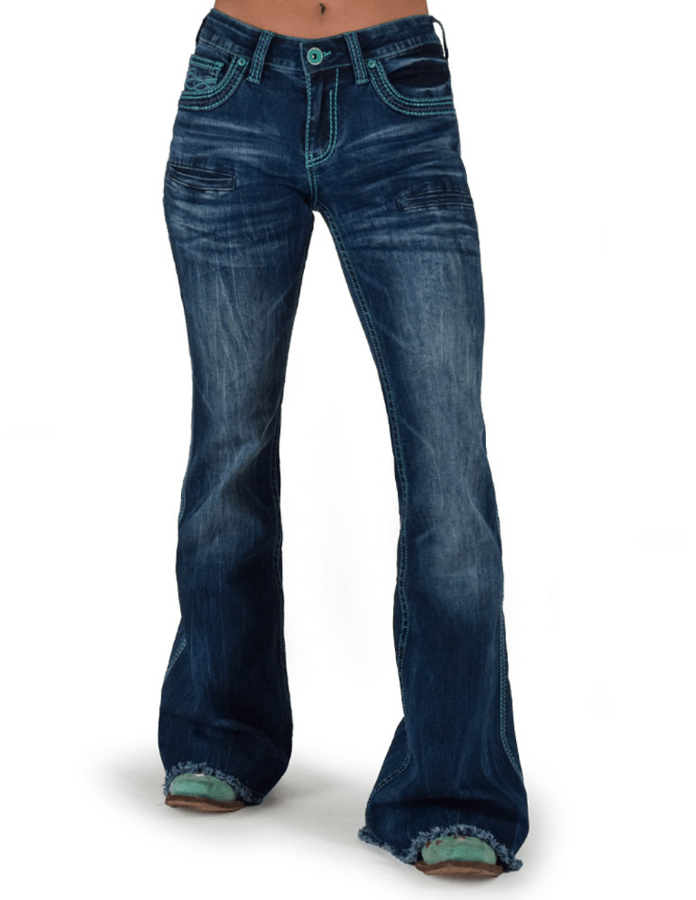 These jeans are running true to size in the waist and hip, so stick with your regular size for the best fit. Just don’t wait—between the fringe, flare, and colorful stitching, this limited style is sure to fly out the door.