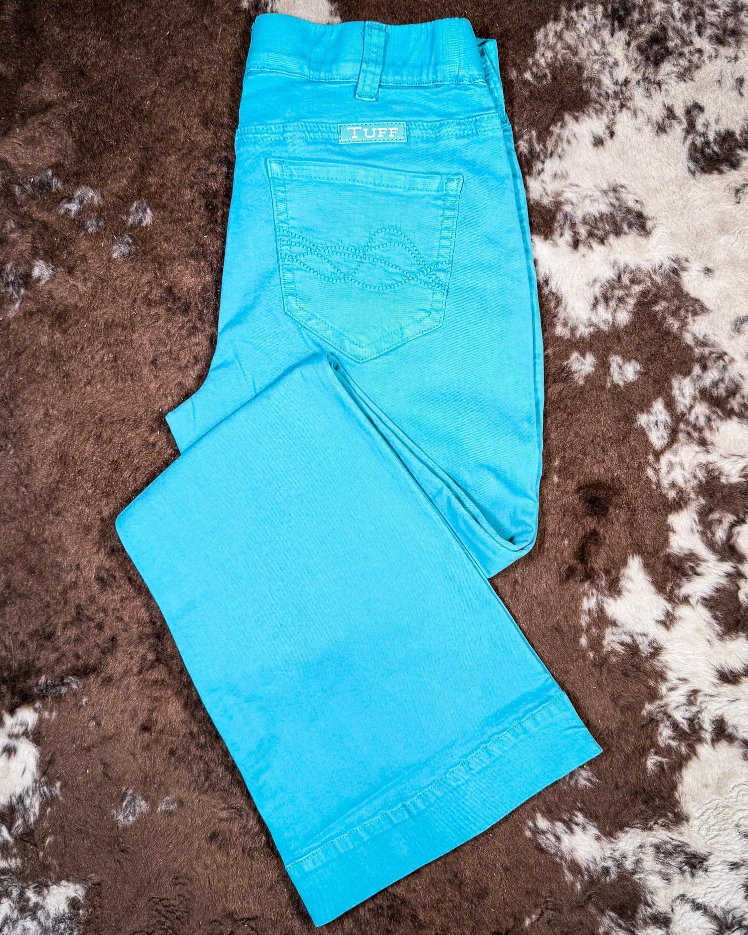 Step into effortless style and comfort with the Cowgirl Tuff Turquoise Pull-On Trouser Jeans, a must-have for anyone who loves a chic yet practical wardrobe staple. The first thing you'll notice is the stunning turquoise-colored wash, a rich and bold hue that adds a unique touch to your denim collection. Whether you're dressing up for the office, heading out to a special event, or keeping things casual, these trousers will elevate your look with their clean, sophisticated design.