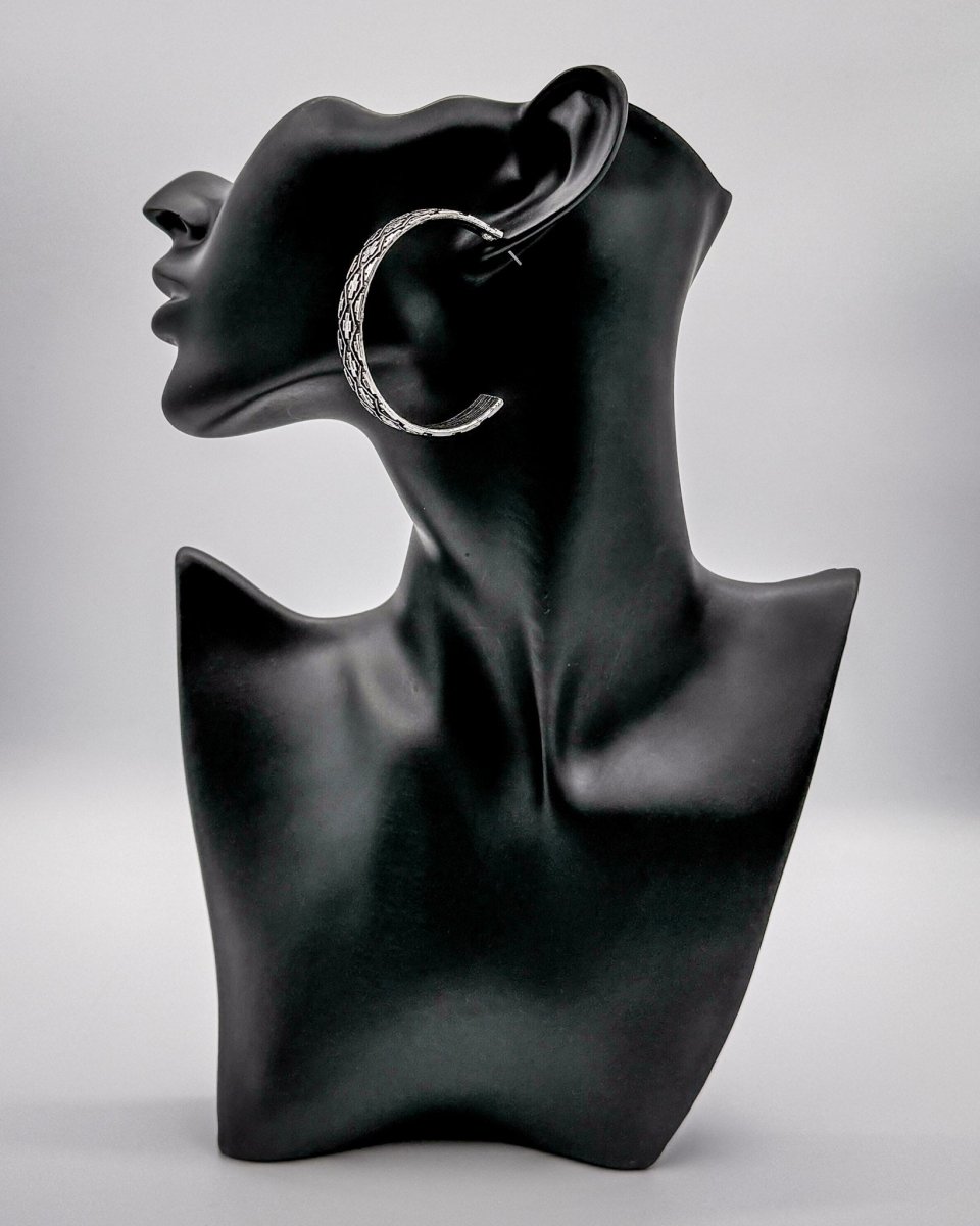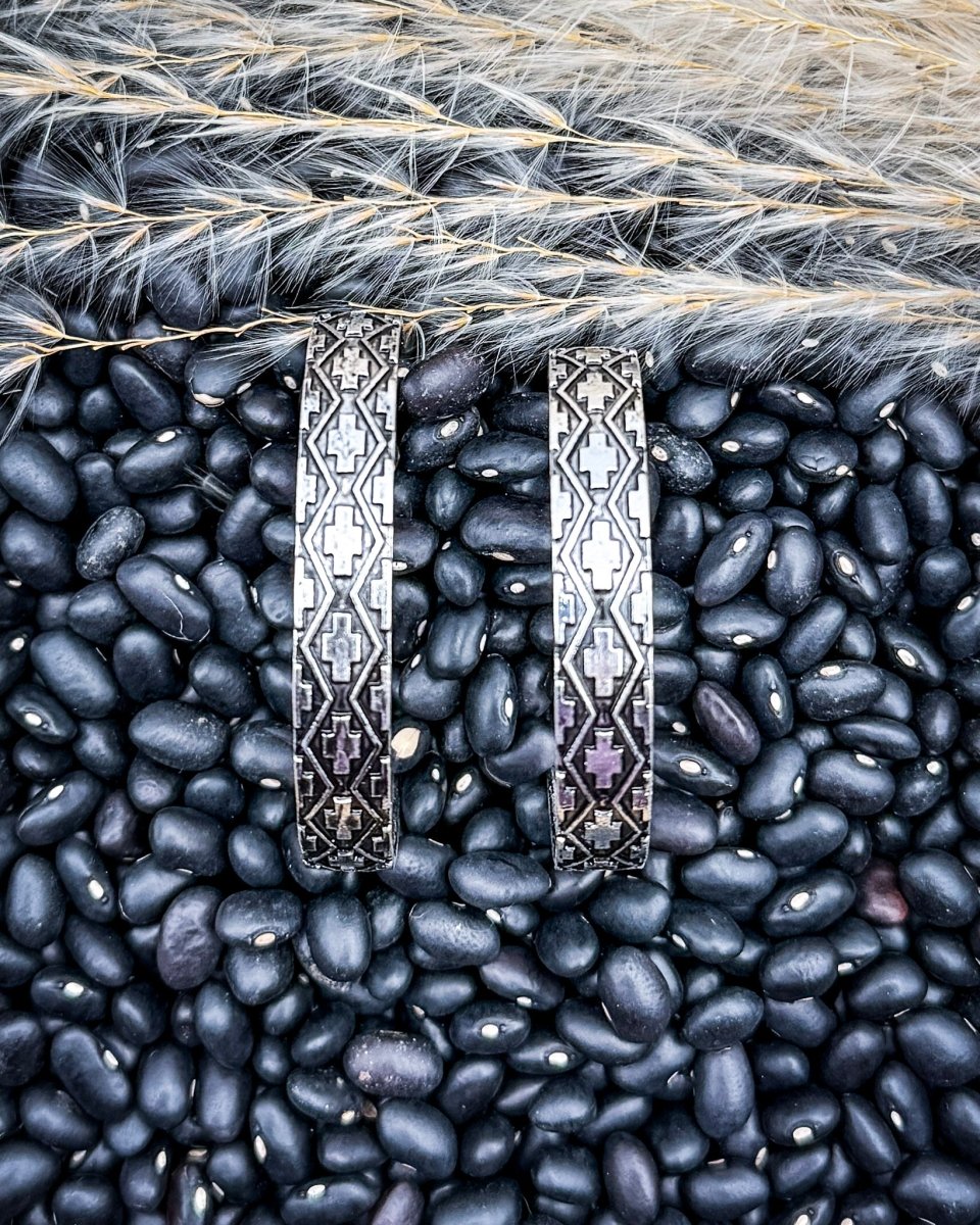 The Ridgeway Aztec Hoop Earrings are an easy staple with just enough detail to stand out. Designed with a classic hoop shape and finished with Aztec accents along the outer edge, this pair blends texture and simplicity for everyday wear.
