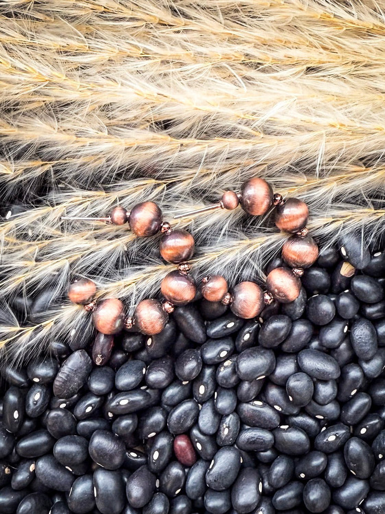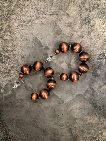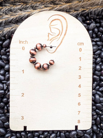 The Betsy Navajo Style Pearl Fashion Semi Hoops bring a warm, earthy twist to a classic western favorite. These copper-tone semi-hoop earrings feature graduated faux Navajo pearl beads with a brushed, antique-style finish that gives them a rich, timeworn appeal.