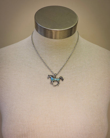 Silver-tone horse-shaped pendant with faux turquoise inlay