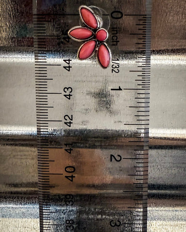 Each earring is designed with five petal-shaped stones surrounding a center stone, creating a simple floral silhouette that feels both classic and fresh. The pink stones have a subtle shine that catches the light without being too flashy—perfect for gals who love a little color but want something wearable for any day of the week.