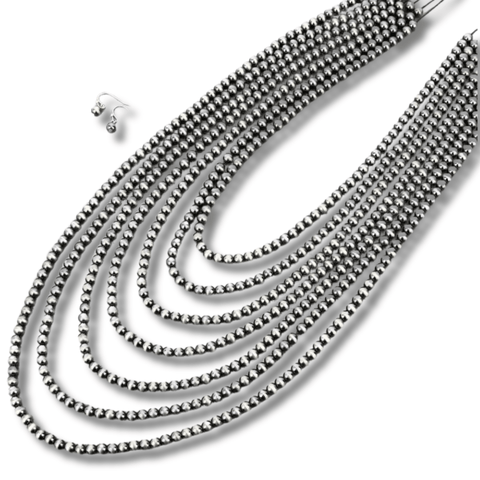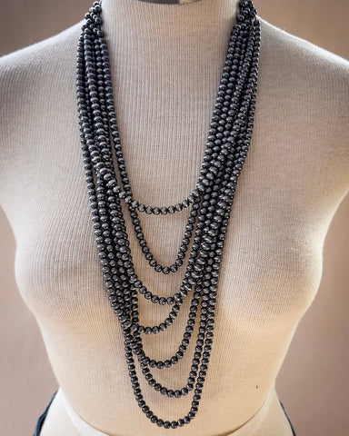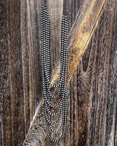 Elevate your accessory game with our Faux Navajo Pearl Layered Necklace, where classic western charm meets modern style. This stunning piece features a beautiful combination of faux Navajo pearl layers, creating a visually captivating look.