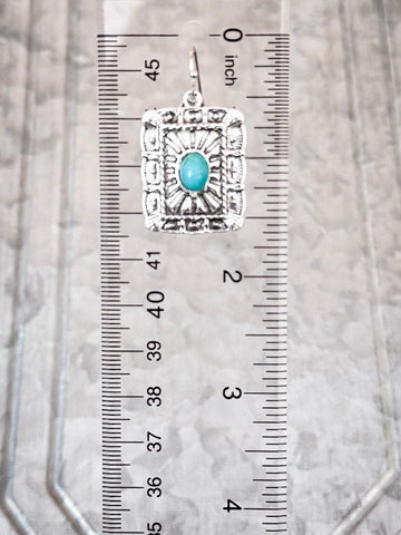 The matching earrings echo the same design in a more compact form—lightweight enough to wear all day, but impactful enough to catch attention with every turn of your head. They feature a center turquoise stone, framed by intricate silverwork and a sunburst pattern that mirrors the pendant perfectly. It’s all the power of the choker, in a smaller, swingy package.