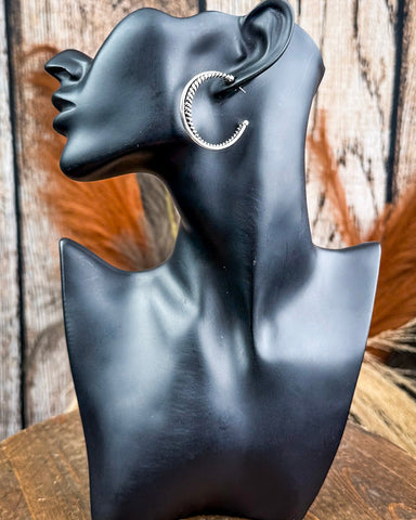 Lightweight and easy to wear, these earrings make a statement without ever shouting. They’ve got that timeless shape you can throw on with just about anything—whether you're dressing up a graphic tee or adding a little shine to your night-out look. The rope-inspired twist along the inner edge adds subtle western flair, making them a go-to for anyone who loves a clean look with a little extra attitude.