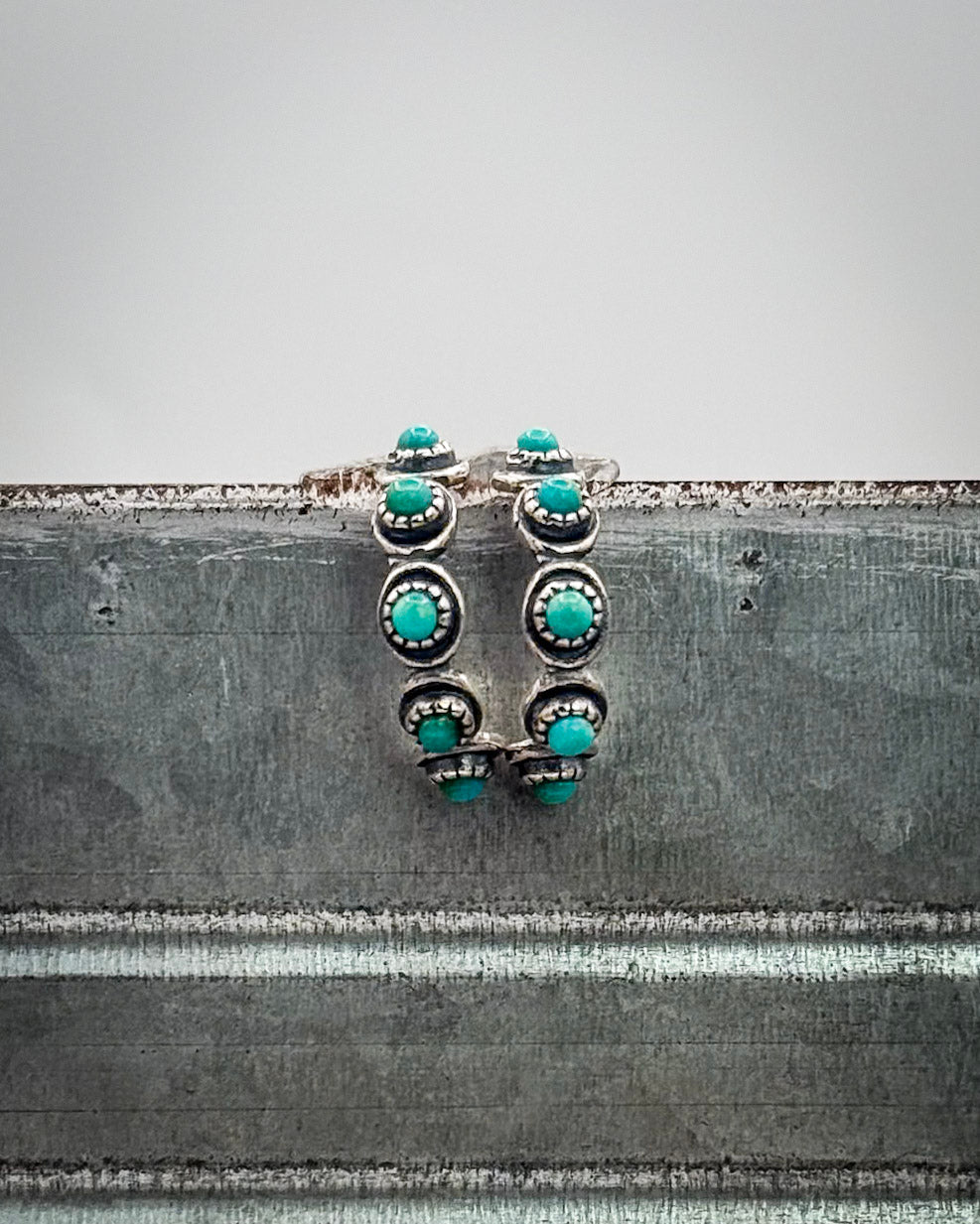 • Stones: Genuine turquoise cabochons (five per hoop)