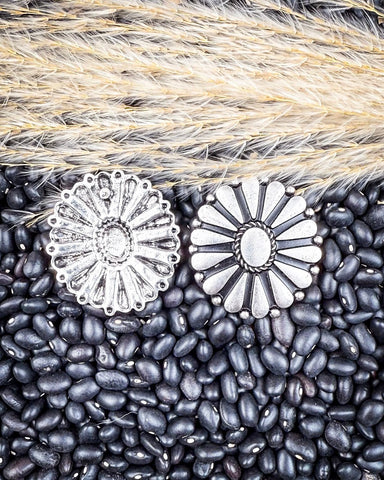 Measuring 1.5 inches across, these earrings are the perfect size to catch the light without stealing the show. The raised oval center is framed by rope-textured detailing, while the petal-shaped spokes add movement and depth. Every detail is carefully crafted to create a layered, dimensional look that feels both rustic and refined.