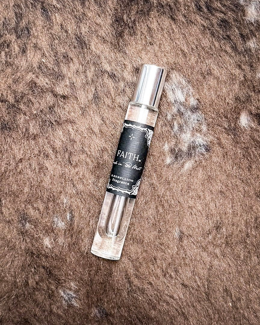 Packaged in a sleek 10 ml glass roll-on vial, Faith is travel-friendly and easy to slip into your purse, clutch, or even your pocket. Just a quick swipe on your pulse points—wrists, neck, collarbone—and you’re ready to go. No mess, no fuss, just a fragrance that feels as natural and layered as you are.