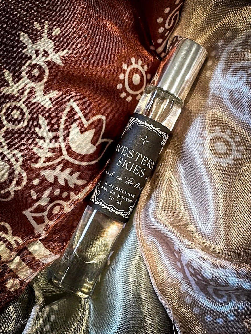There’s a quiet kind of magic in the hour when the sun starts to dip low—casting long shadows across the hills, warming the earth with the last of its light. That’s the feeling captured in Western Skies, a handcrafted roll-on perfume oil by R. Rebellion that brings comfort, depth, and a touch of mystery with every wear.