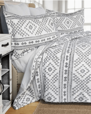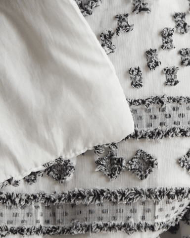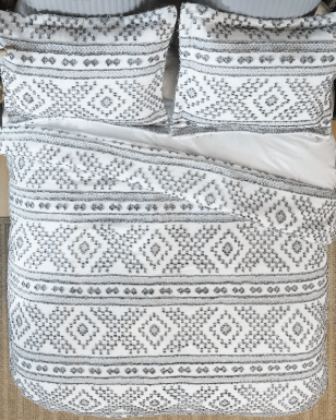 Inspired by the slow beauty of a hygge-inspired home, Ceniza layers in warmth without overwhelming your space. The pattern is subtle but striking—an intricate diamond motif in shades of soft black and grey across a creamy white base. It’s the kind of neutral that plays well with anything, but still brings its own personality. Whether your space leans rustic, modern, or somewhere in between, this comforter adds just the right amount of visual interest.