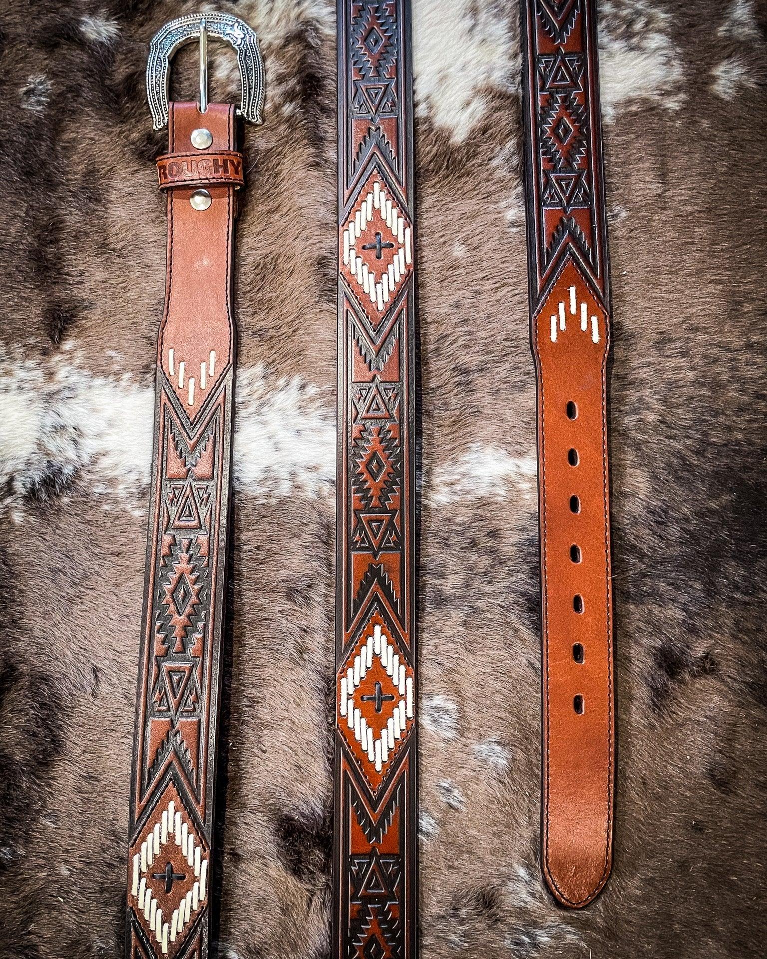 Choctaw Roughy Tooled/Laced Belt Brown/Ivory/Black Aztec