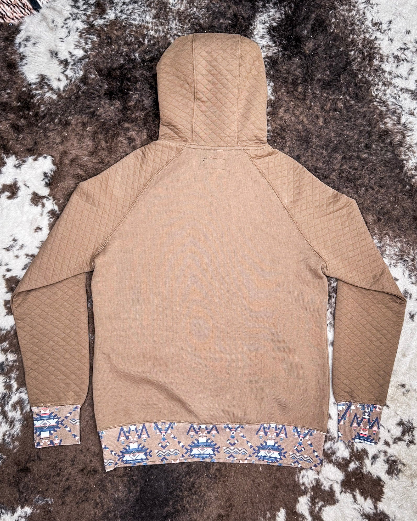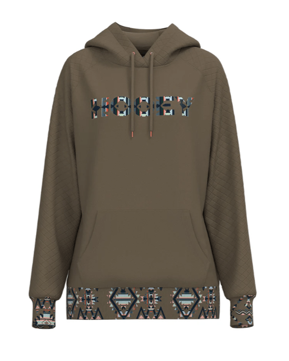 Let’s talk about the color—Shitake Brown is rich, earthy, and neutral enough to pair with just about anything in your closet. But it’s the bold “HOOEY” lettering across the chest and that subtle pop of Aztec print at the cuffs and hem that give this sweatshirt its western edge. That patterned trim adds personality without being loud—just enough to show off your style without shoutin’ it from the rooftops.