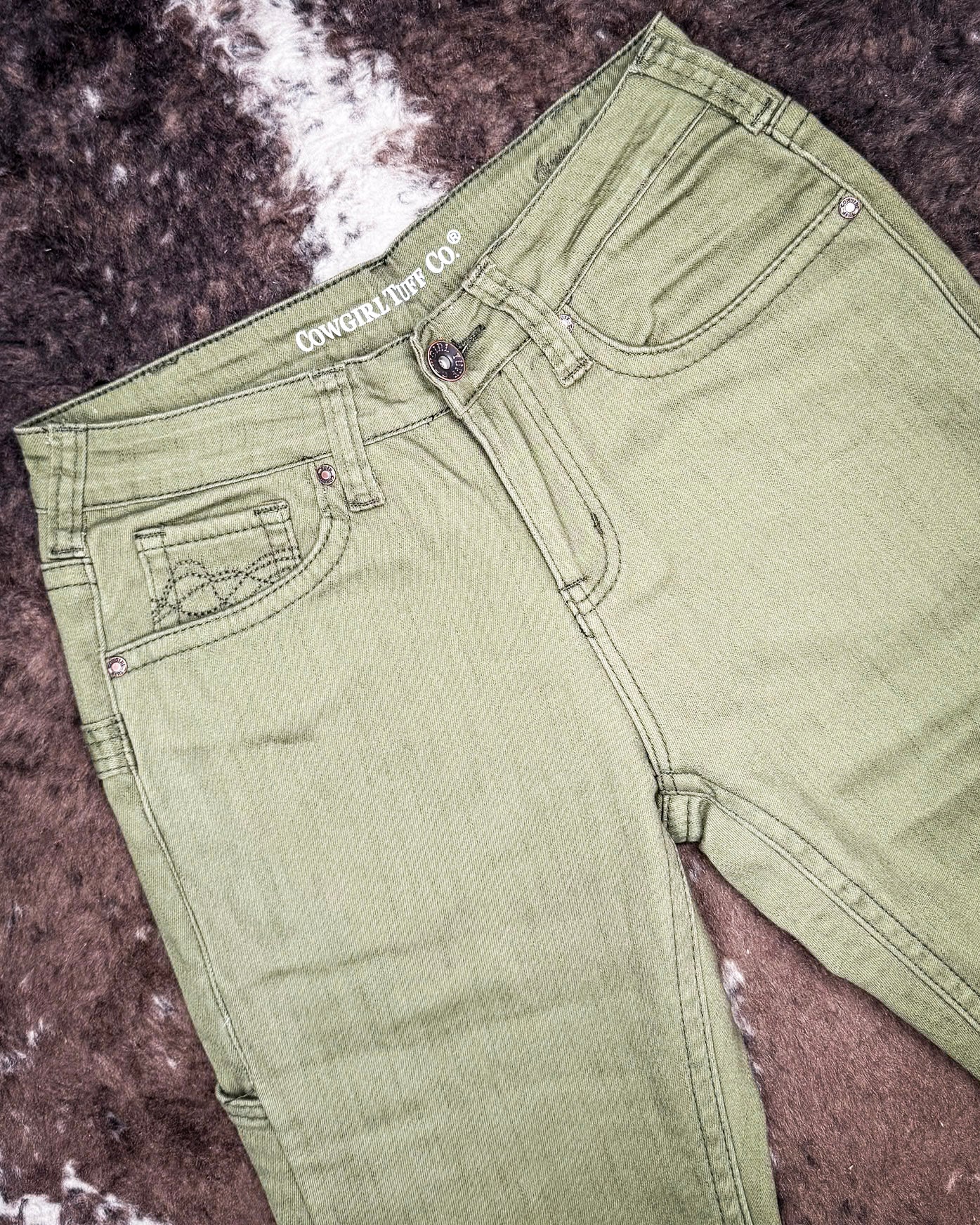The soft, stretch flannel lining provides cozy warmth without adding bulk, making these jeans perfect for cold weather. Finished in a rich army green hue, they bring a rugged yet refined look to your Western wardrobe. The bootcut style pairs perfectly with your favorite boots, while the seven-pocket design offers function and versatility for work or everyday wear.