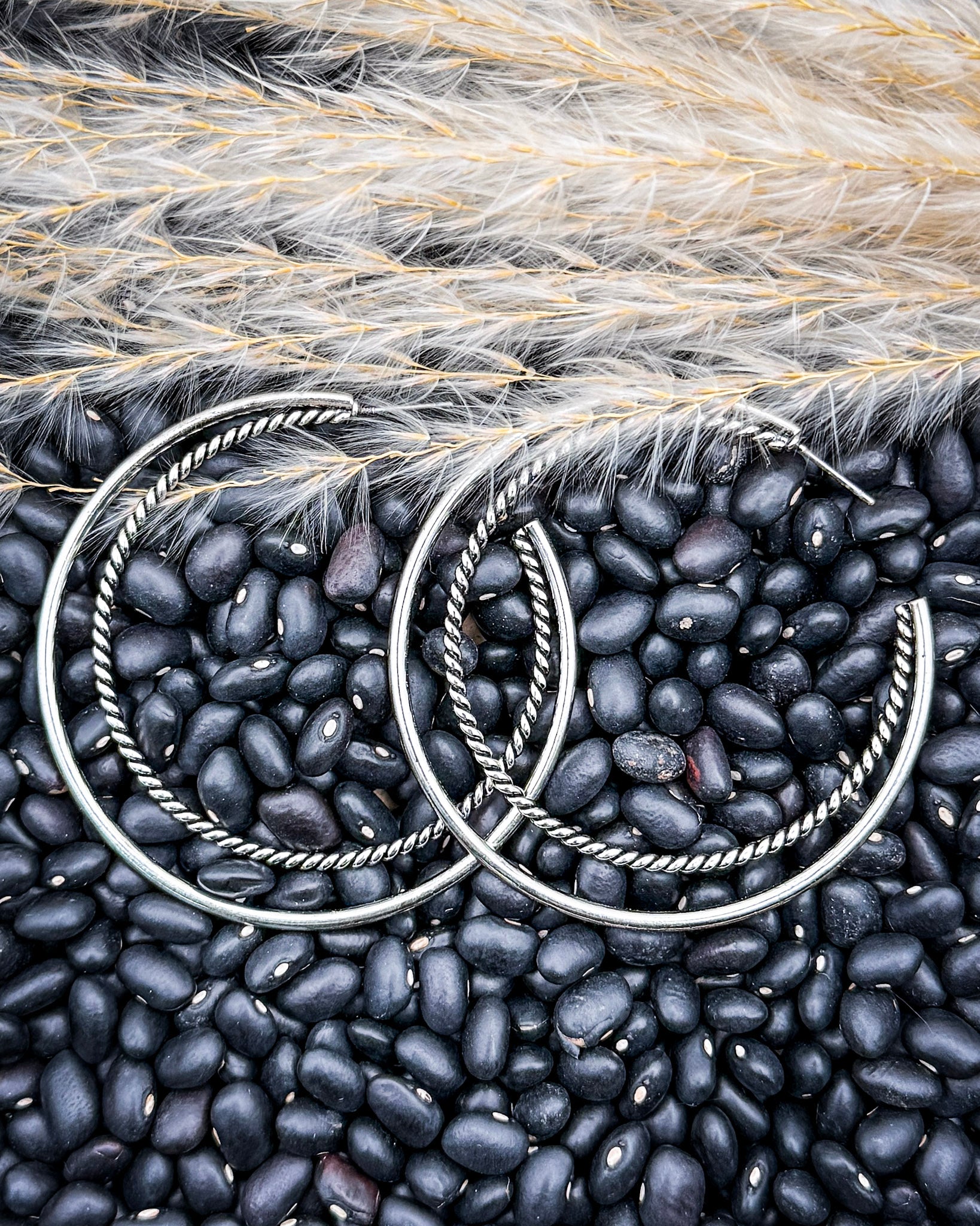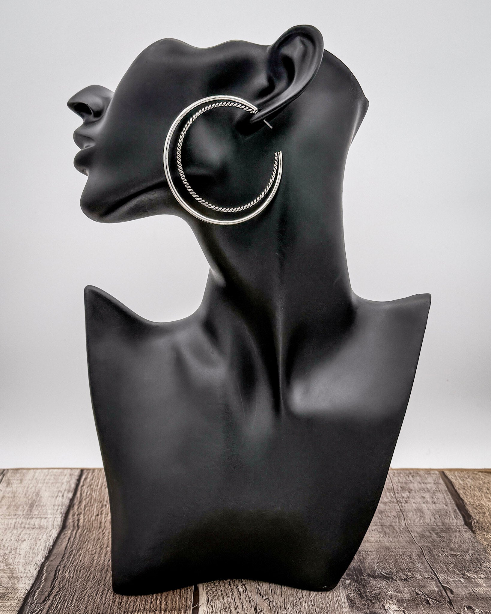 - Rope-textured inner hoop for added detail