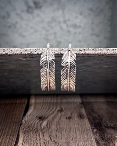 Graceful, bold, and effortlessly western, the Hawk Feather Semi Hoop Earrings are a statement piece with soul. These fashion earrings are inspired by the power and symbolism of feathers — representing freedom, movement, and strength. Carefully crafted in a striking semi-hoop silhouette, each earring features intricately etched feather details that create a dynamic, layered look.