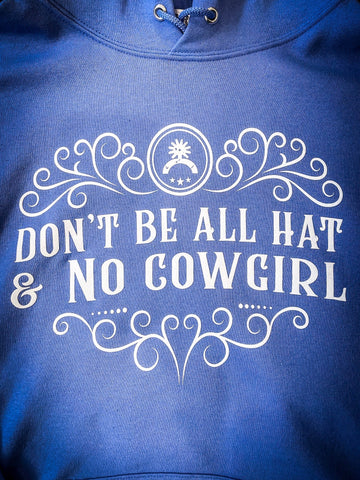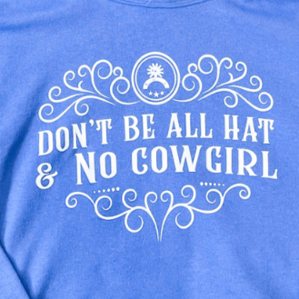 - Don't Be All Hat & No Cowgirl graphic on the Front