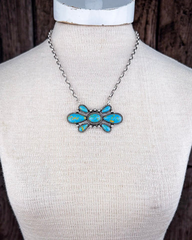 The color is the real showstopper. Bright turquoise with golden-brown matrix lines offers that perfect pop—vivid without being loud, and earthy without being dull. Whether you're dressing up your go-to black tee or pairing it with a denim button-up, this necklace instantly pulls the whole outfit together.