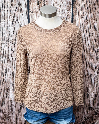 Timeless, versatile, and just the right kind of bold—the Burnout Mesh Top in Camel is one of those pieces that slips effortlessly into your fall wardrobe and instantly elevates everything around it. With rich tones and a vintage-inspired scrollwork pattern, this top feels like a fresh take on a classic—elegant but unfussy, feminine with just the right touch of edge.