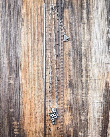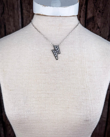 The Checkered Lightning Pendant Necklace is here to turn up the volume on your everyday look—bold, punchy, and impossible to ignore. With its graphic edge and western soul, this one’s made for the girl who doesn’t shy away from standing out.