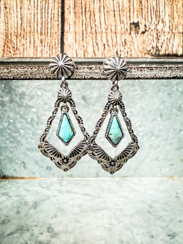 Elevate your style with our Western Post Dangle Earrings, where classic rustic charm meets modern flair. Designed for those who appreciate the timeless appeal of western fashion, these earrings seamlessly blend tradition with contemporary elegance. Whether you're heading out for a night on the town, dressing up for a country concert, or simply adding a bit of western spirit to your everyday ensemble, these earrings are the perfect statement piece to complete your look.