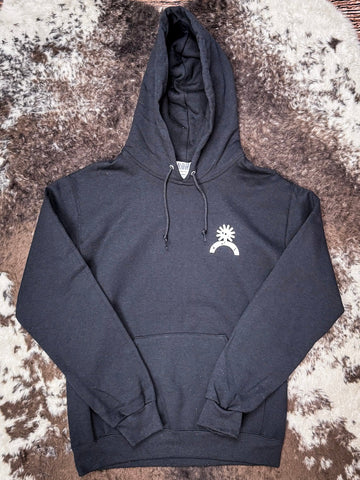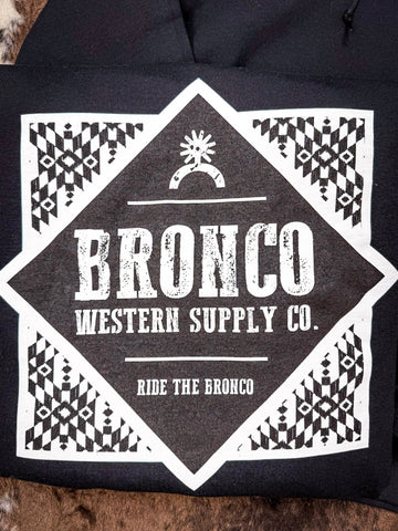 On the chest, our Spur Up logo keeps it minimal and meaningful. Then the back brings the heat with our oversized Bronco Western Supply Co. graphic, framed in a bold, bandana-style print. It’s a nod to tradition with a modern edge—and it turns a simple black hoodie into something that tells a story.