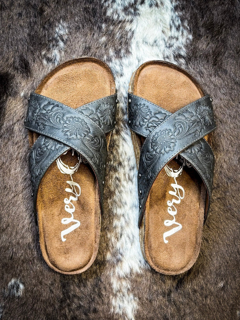 Introducing the Jaycee Sandals by Very G, where classic Western charm meets modern comfort in every step. These slip-on sandals redefine casual elegance with their timeless design and luxurious embossed leather top, making them an essential addition to any wardrobe. Designed for those who appreciate both style and function, the Jaycee Sandals effortlessly blend intricate craftsmanship with everyday practicality.