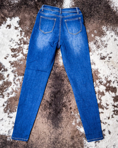 But it’s not just about how they look—it’s how they make you feel. These jeans are built for the long haul, offering a flattering stretch that recovers wear after wear. No bagging, no sagging—just reliable, curve-loving comfort that keeps its shape no matter where the day takes you. Whether you're two-stepping under string lights or grabbing coffee on the go, the Midnight Range Skinnies are your new go-to companion.