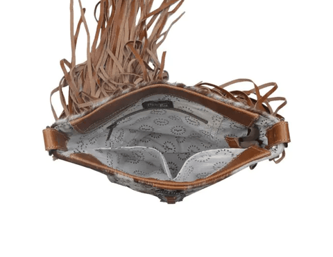 Long fringe flows from each side, adding the kind of movement and personality that makes this bag feel alive. Toss it on with denim and boots or pair it with a maxi and a graphic tee—it’s one of those pieces that finishes the outfit effortlessly.