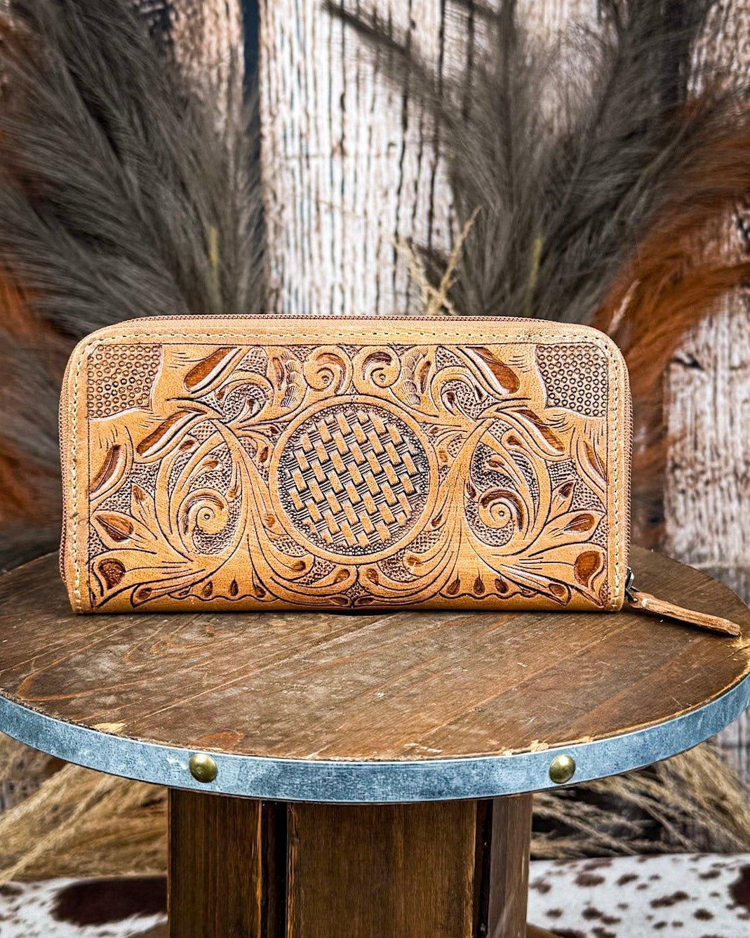 Whether you're a cowgirl with a wild soul or just a person who loves Western flair, this wallet brings just the right mix of rugged style and refined detail. Its structured design maintains its shape, while the tooled leather offers rich texture and personality that only gets better with time.