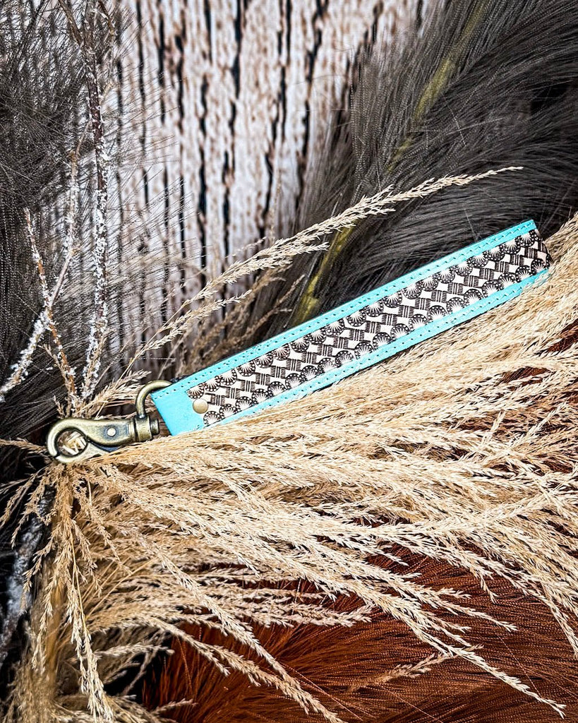 With the Myra Bag – Teal Accent Hand-Tooled Strap Key Fob, utility meets artistry. It’s a simple accessory elevated by craftsmanship, color, and care—made for those who don’t just carry keys, but carry a sense of style, pride, and personal story wherever they go.