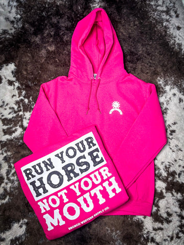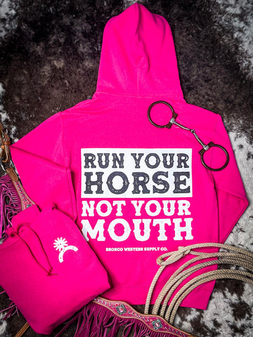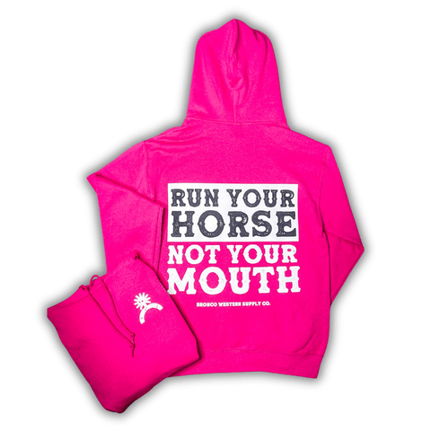 - Run Your Horse Not Your Mouth graphic on the back and Spur logo on left chest