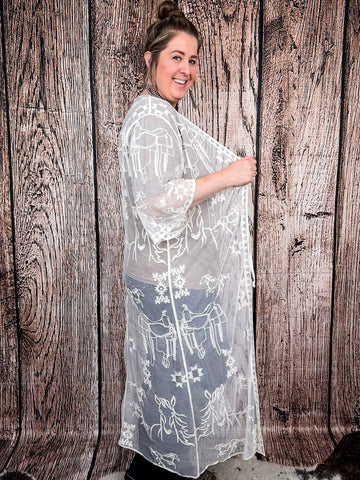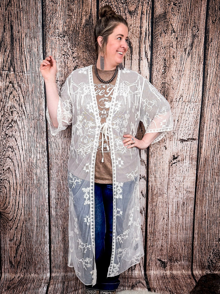 Stampede Embroidered Mesh Lace Duster