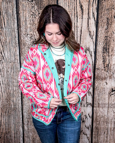 The Brynella Jacket isn’t shy—and that’s exactly the point. It’s for the days when your outfit needs a little spark, when you want to feel wrapped up in something that’s both fun and functional. Whether you're headed to the rodeo, the coffee shop, or just chasing a little color in your day, the Brynella’s ready to ride along.