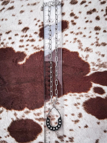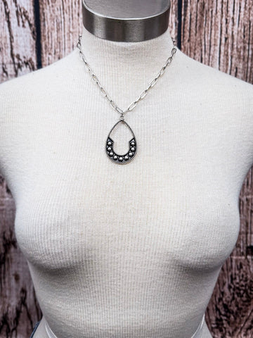 Meet The Calico Chain, the matching necklace to our best-selling Calico Drops—and the finishing touch your outfit’s been waiting for. With a bold yet timeless teardrop pendant, silver bubble details, and a modern paperclip-style chain, this necklace combines old-soul western charm with a clean, minimal silhouette. It’s easy to wear, easy to layer, and easy to love.