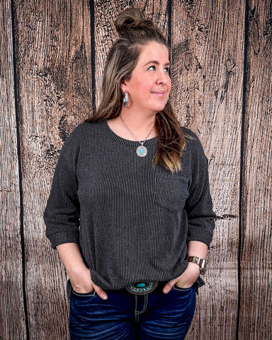 The front pocket adds a casual touch, while the scoop neckline keeps things feminine and easy to accessorize. Whether you're heading to work, grabbing lunch with a friend, or just running errands, The Ellis Top in Black is one of those pieces you’ll feel good in every single time.