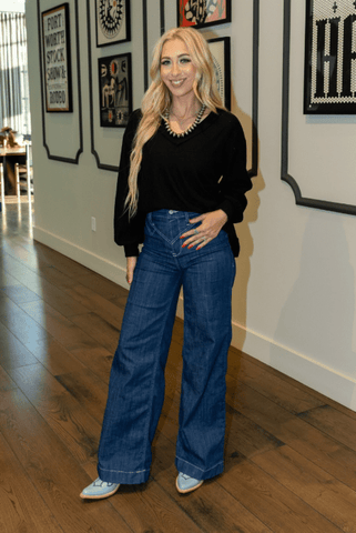 And let’s talk about black. It’s classic, always flattering, and works with absolutely everything. Whether you’re pairing it with denim and turquoise for that timeless western look or tucking it into a skirt with boots for a night out, The Hadley Top in Black gives you that clean, confident base for whatever the day brings.