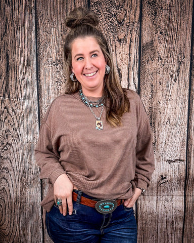 The Stillwater Tunic Top is your go-to for effortless comfort with just the right touch of western-inspired ease. Designed with an oversized fit and made from a soft, breathable waffle-knit material, this tunic is perfect for layering, lounging, or hitting the town in style. If you’re looking for a cozy top that still feels pulled-together, this is the one.