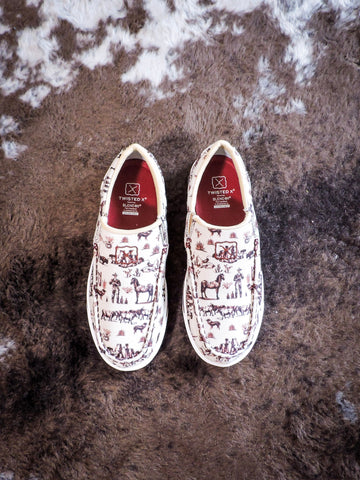 The Women's Slip-On Kicks collection is a Twisted X® take on classic profiles with style you've come to love. These shoes utilize unique materials, exciting patterns, and powerful pops of color, all while blending style, quality, and unrivaled comfort. These Slip-On Kicks feature a fabric upper, ecoTWEED™ lining, Blend85™ recycled foam footbed, and a molded rubber outsole integrated with eco-friendly rice husk, a repurposed agricultural by-product. These Kicks are a perfect balance of style and comfort that is sure to stand out in a crowd.