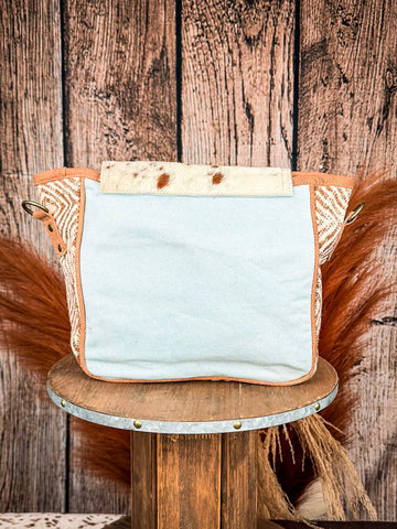 Now let’s talk about the star of the show—that hair-on-hide flap. Each bag comes with its own unique hide pattern, and no two are ever alike. Maybe yours will have soft speckling, maybe bold patches or subtle streaks. We don’t make any guarantees, and honestly, that’s the beauty of it. You’re not just getting a bag. You’re getting a one-of-one piece, made with natural character and western soul.