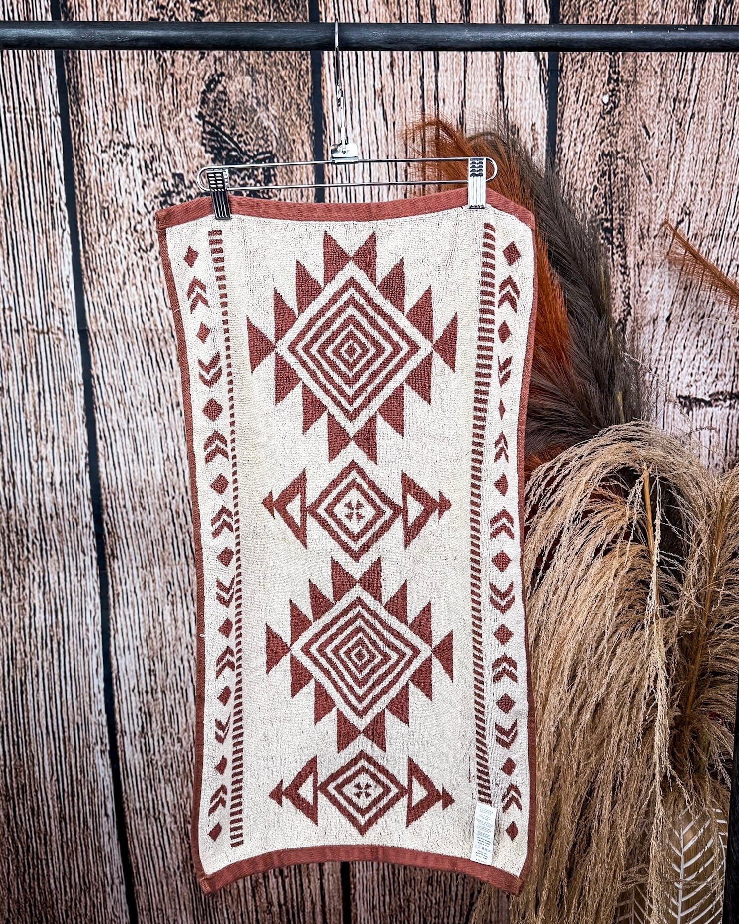 Looking for a towel that feels just as bold as it is functional? Meet the Myna Mesa Towels by Myra Bag. Crafted from 100% cotton, these soft, absorbent towels feature a striking geometric design in deep mesa red with crisp ivory accents. The tribal-inspired pattern is rich with southwestern soul, adding warmth, texture, and style to your everyday routine. Whether you’re drying off after a long soak, hanging a fresh set in the guest bath, or folding them up for a rustic display, these towels deliver that perfect mix of comfort and character.