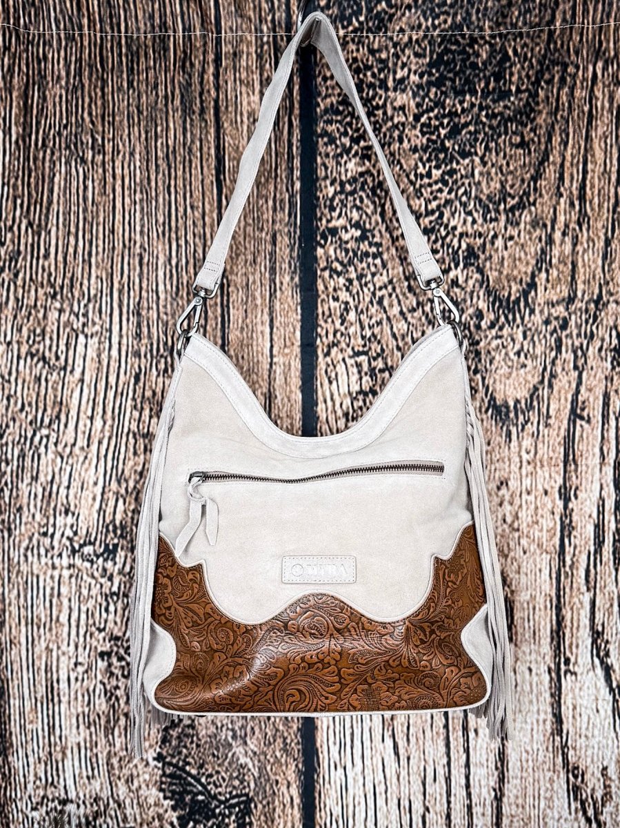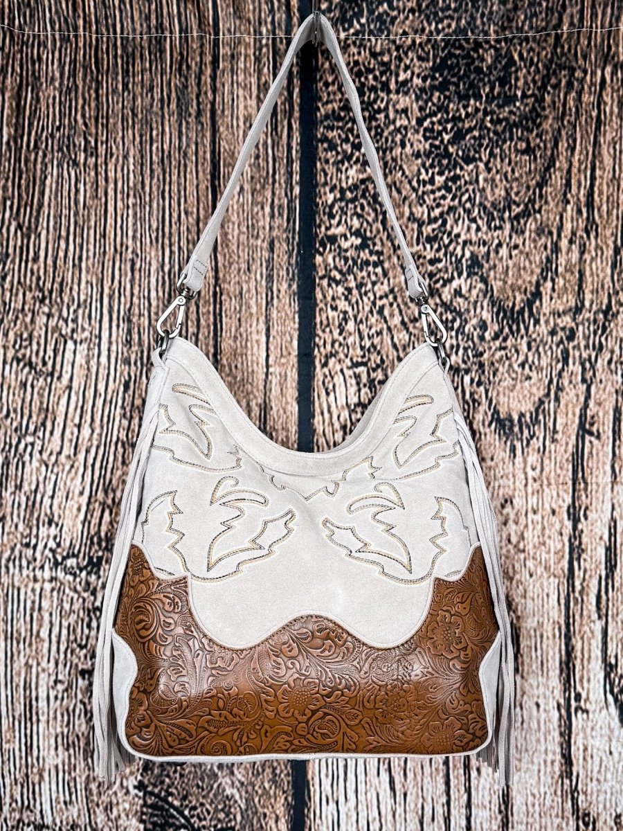 Bold, detailed, and full of western soul—The Electric Desert Tote is a total showstopper. With rich textures, statement fringe, and tooled leather detailing, this shoulder bag brings high-desert energy to everyday life. It’s equal parts edgy and elegant, made for the gals who like their accessories with a little grit and a lot of charm.