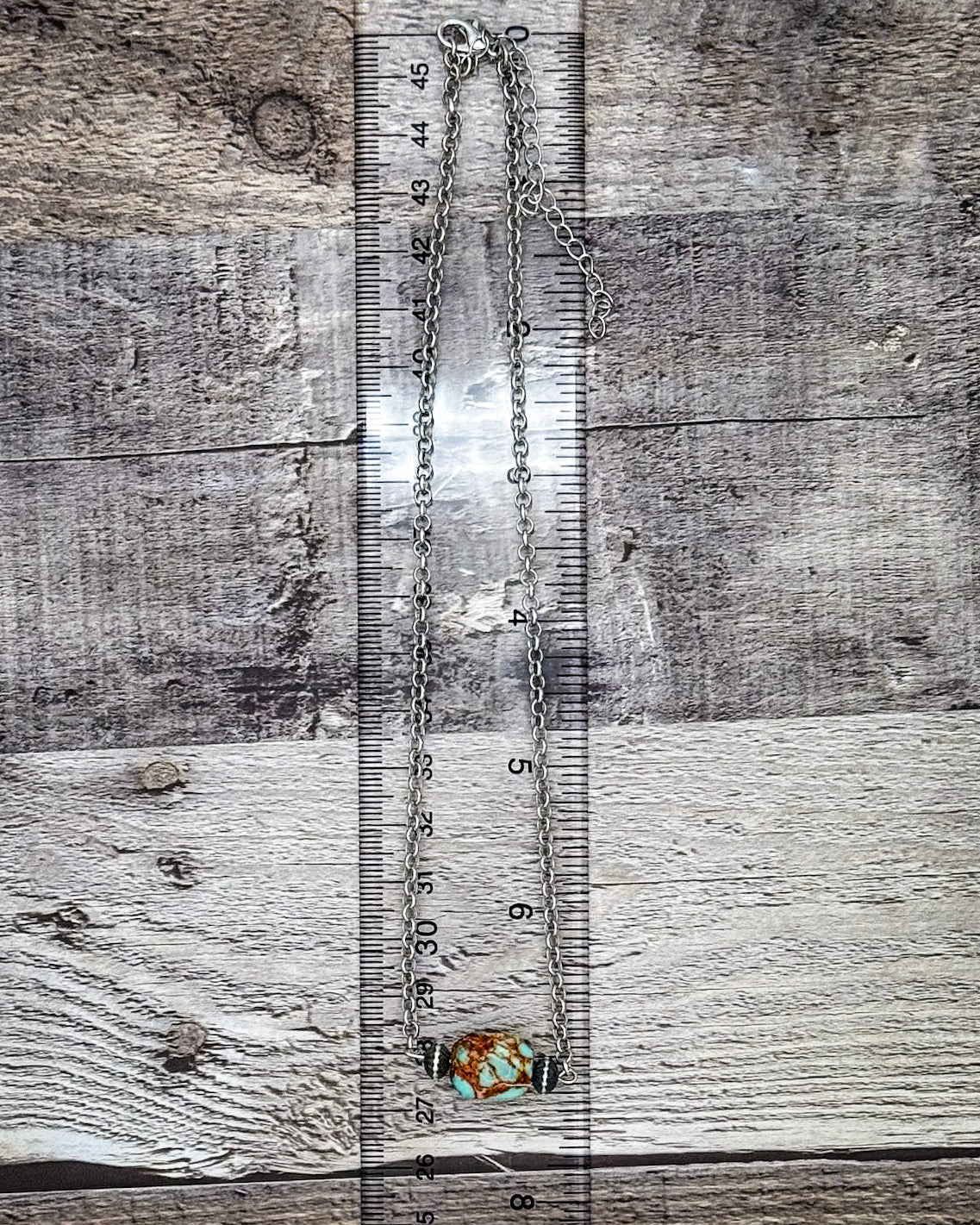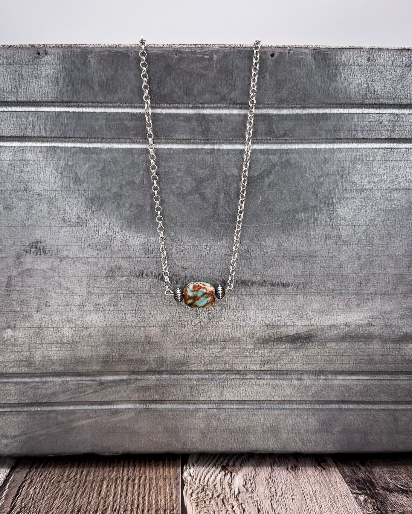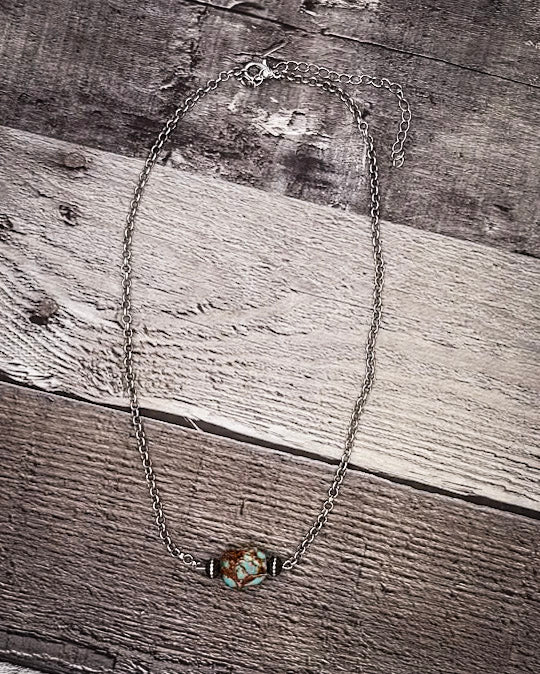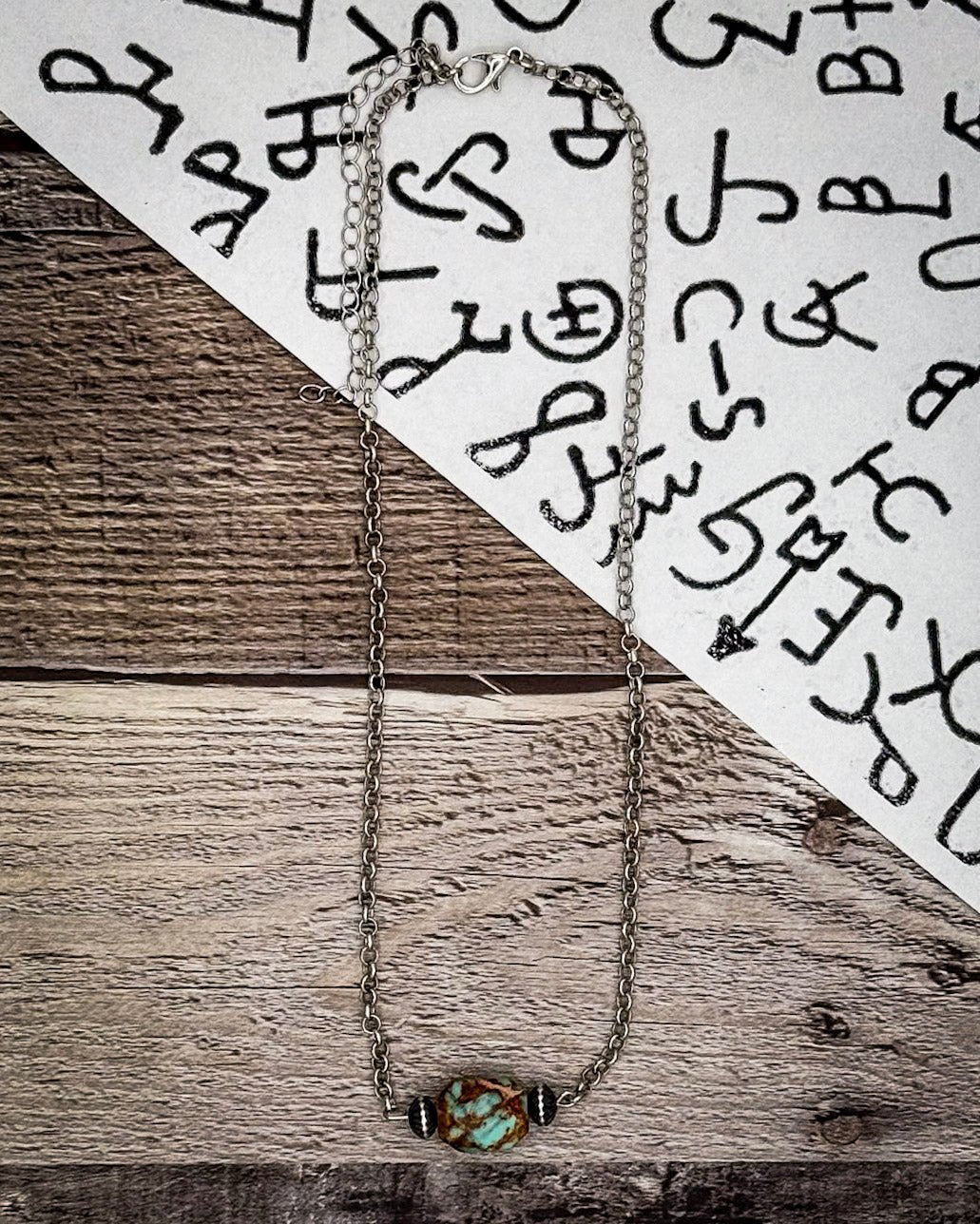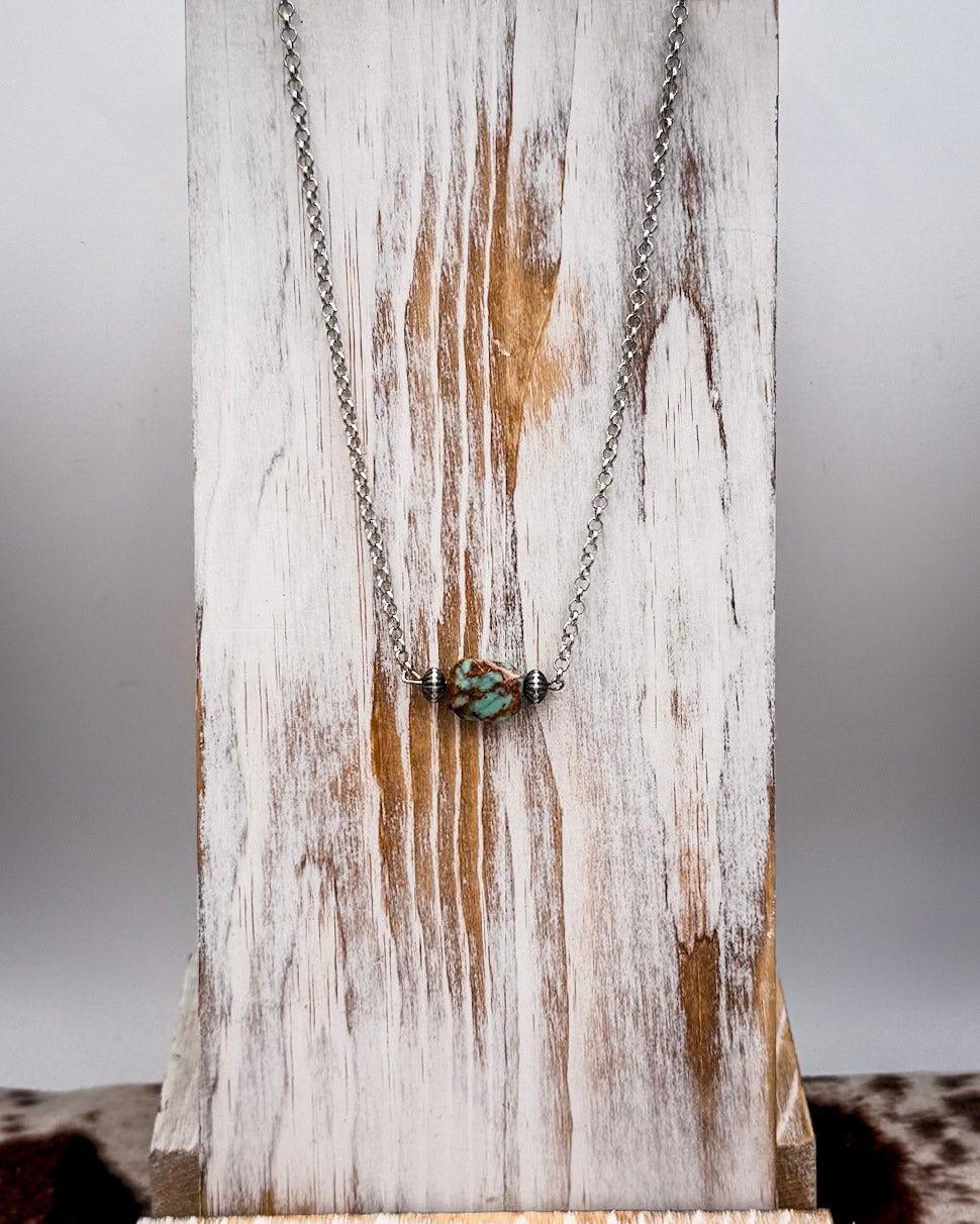 The beauty of this necklace is in its name—just one stone, but a whole lot of personality. Every turquoise variscite bead is one-of-a-kind, with a natural mix of earthy greens, dusty blues, and soft veining throughout. No two are ever alike, which means the necklace you get is uniquely yours.