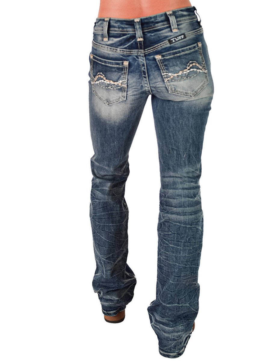 Detailed with cream, tan, and gray triple-stitching, these jeans hold up beautifully to long days in the saddle, the arena, or on the go. The low-stretch cotton blend stays true to Cowgirl Tuff’s legendary durability and classic structure, offering a snug yet comfortable mid-rise fit that flatters in all the right places. Finished with wave-stitched back pockets and subtle contrast details, they bring together the perfect mix of style and function.