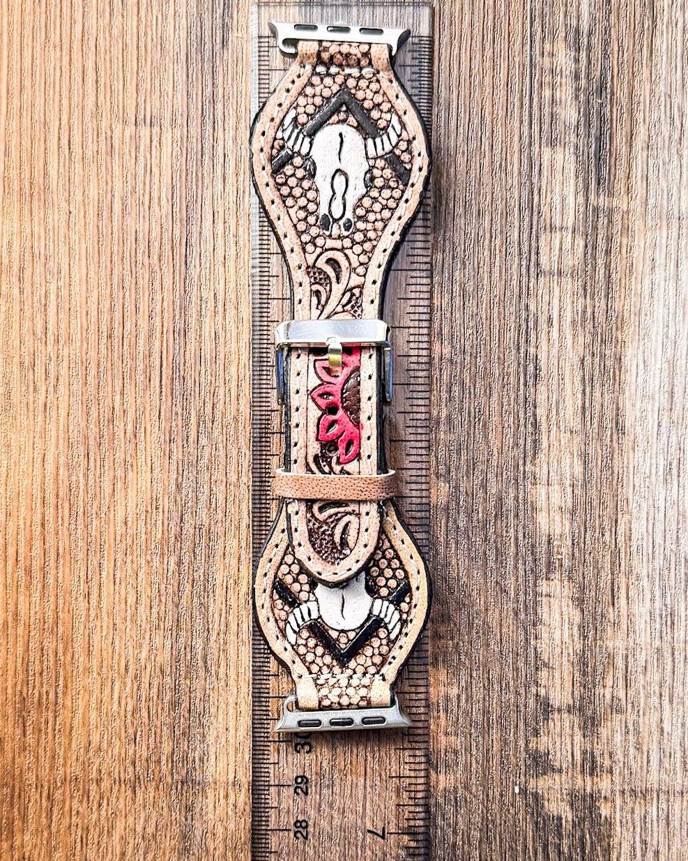 Fashion Apple Watch band with bull skull & floral motif