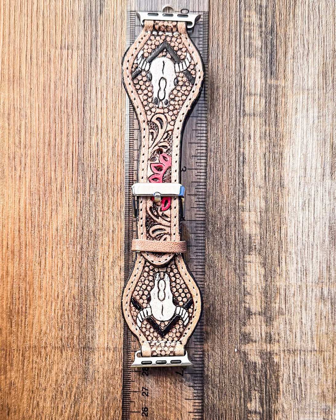 Crafted with durability and comfort in mind, it’s lightweight enough for daily wear but detailed enough to stand out. The silver-toned hardware keeps the look sleek without feeling flashy, while the tooled-inspired design gives your smartwatch a rugged western twist.