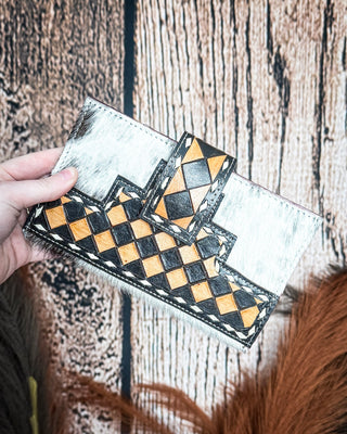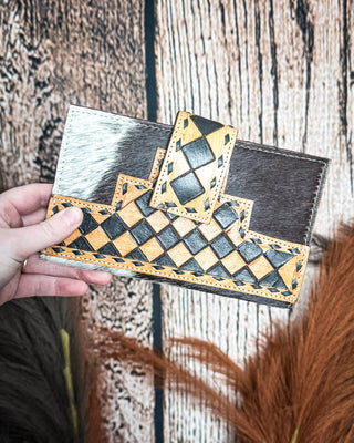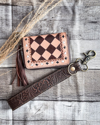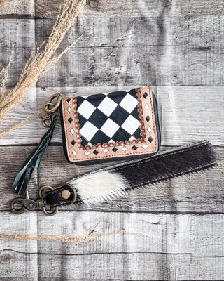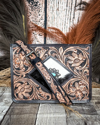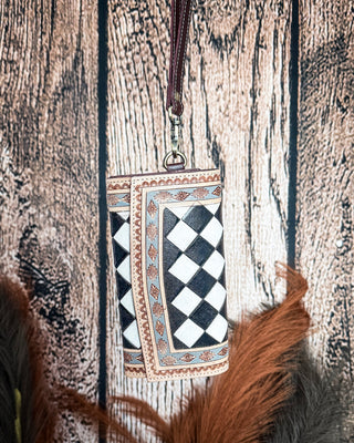 Navajo Sky Hand Tooled Hairon Leather Card Holder in Antique Brown By Myra Bag