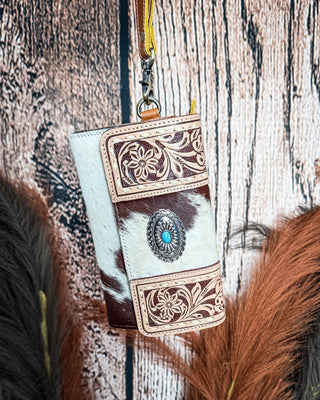 Sage River Hand Tooled Hairon Leather Card Holder in Frontier Aqua By Myra Bag